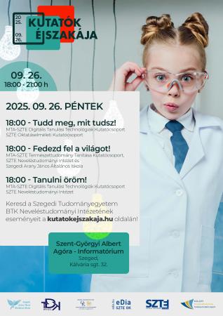 Helyszín: 6722 Szeged, Kálvária sgt. 23. – Szent-Györgyi Albert Agóra, Informatórium